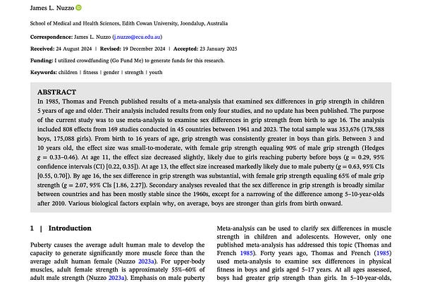 Sex Differences in Grip Strength From Birth to Age 16: A Meta-Analysis