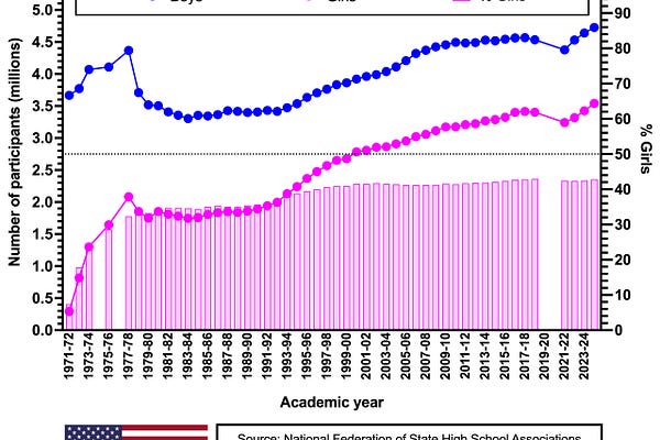 Sex of U.S. High School Sport Participants, 1971-72 to 2024-25