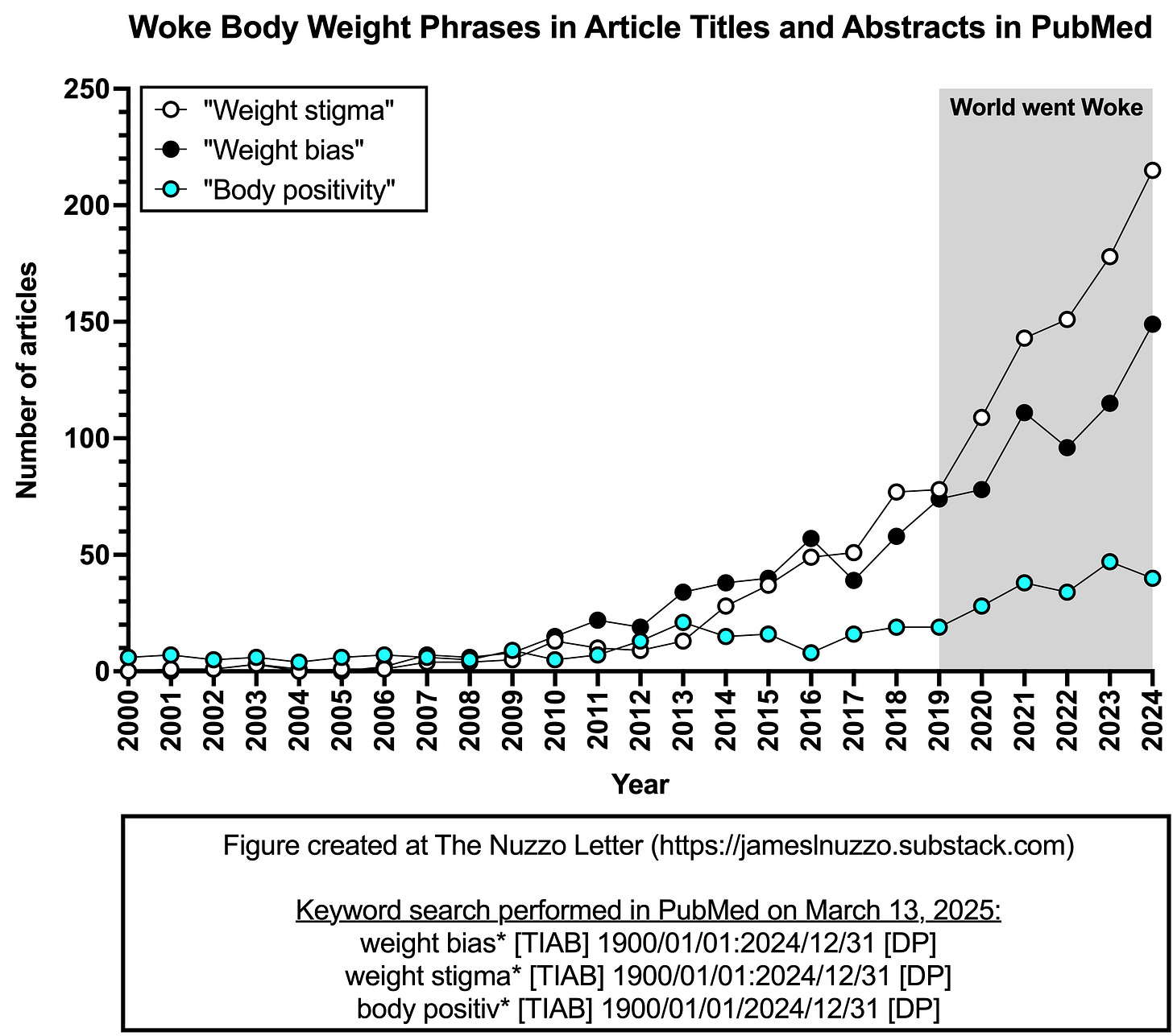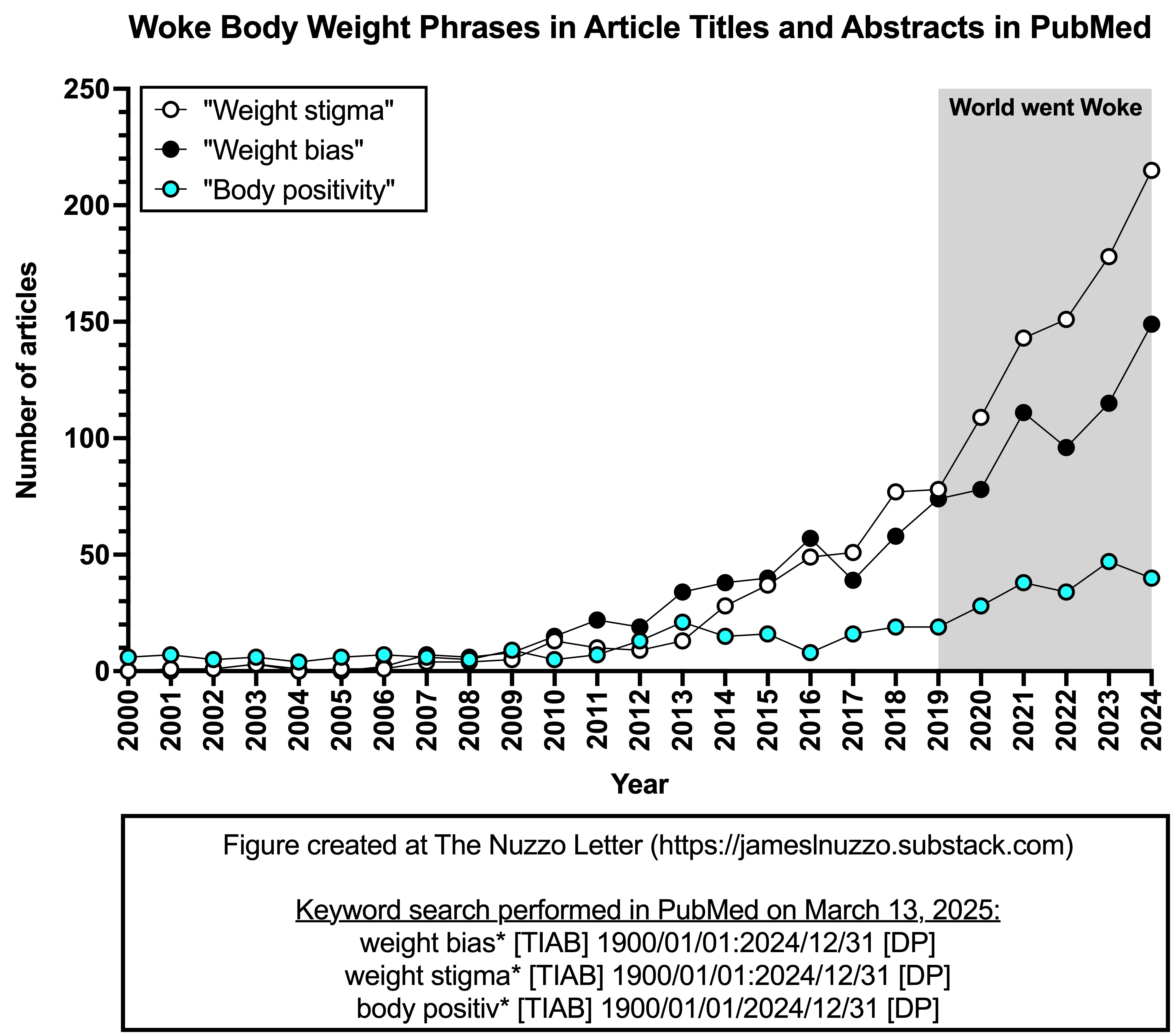 “Body positivity,” “weight stigma,” and “weight bias” are all part of the Woke medicine lexicon, though weight stigma and bias have potential to be used in less politically-charged ways.